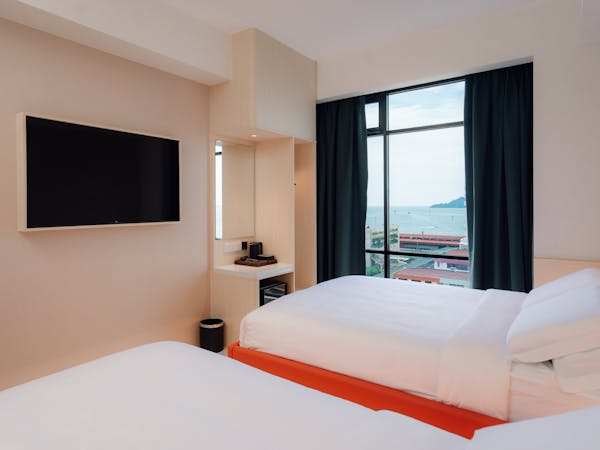 A Family friendly room overlooking the sea, featuring double deck bedding for convenience