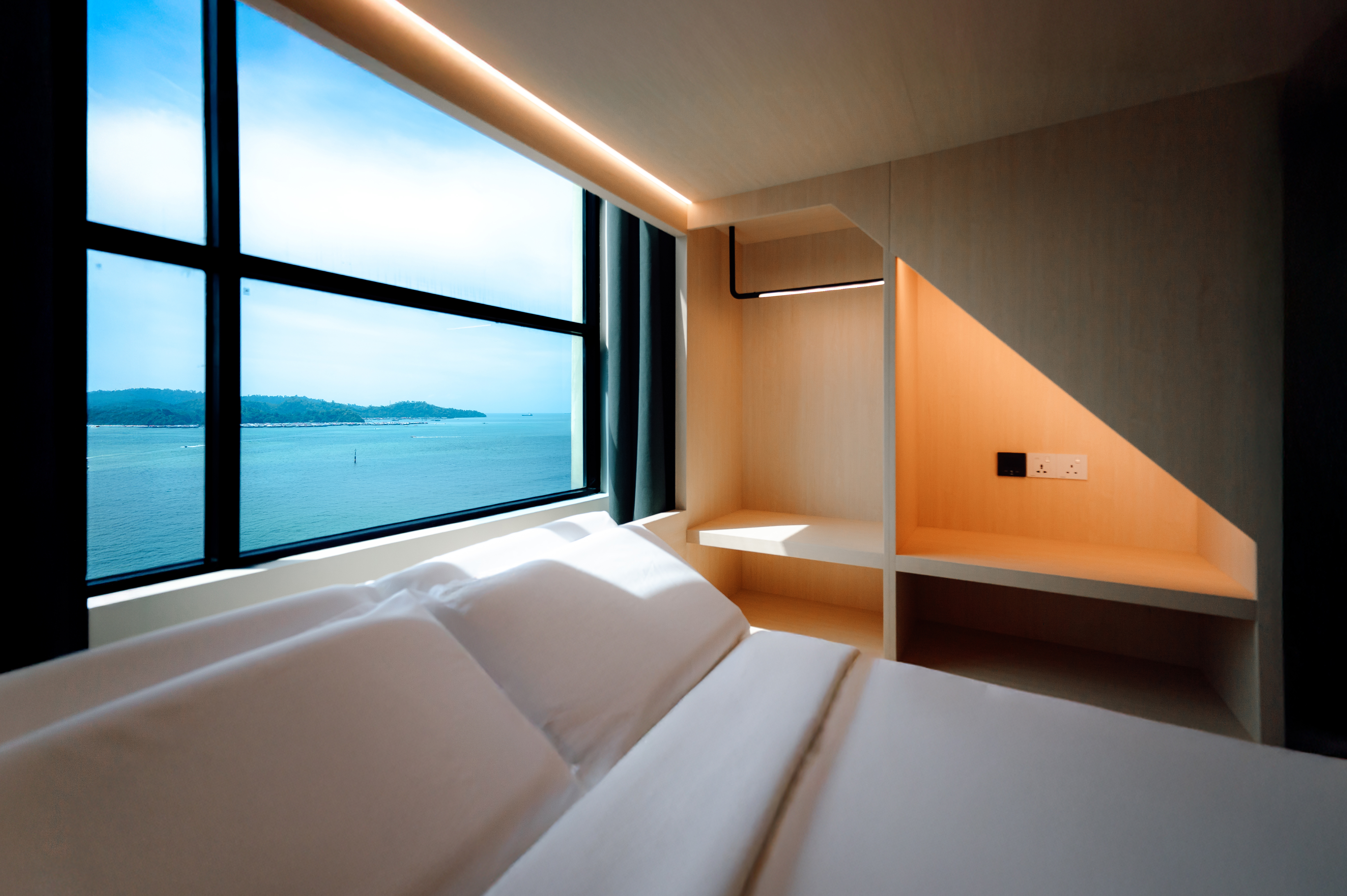 A Family friendly room overlooking the sea, featuring double deck bedding for convenience